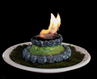 náš osadník Houmr vytvořil malý stolní minitotém a také ohniště s živým ohněm